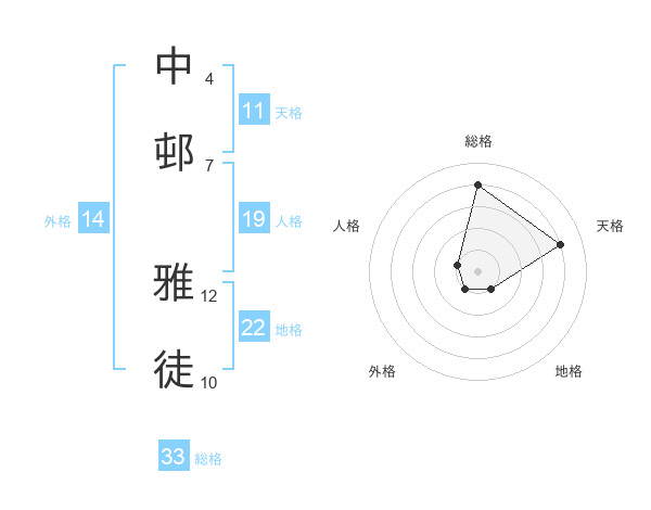 中邨 雅徒さんを姓名の画数から五運を鑑定