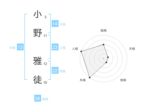 小野 雅徒さんの外格は13画の5点!