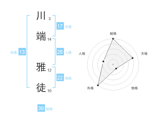 川端 雅徒さんを姓名の画数から五運を鑑定