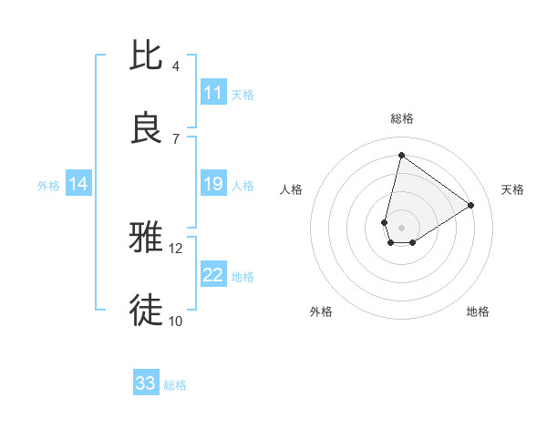 比良 雅徒さんを姓名の画数から五運を鑑定