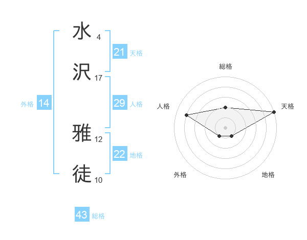 水沢 雅徒さんの天格は21画の5点!
