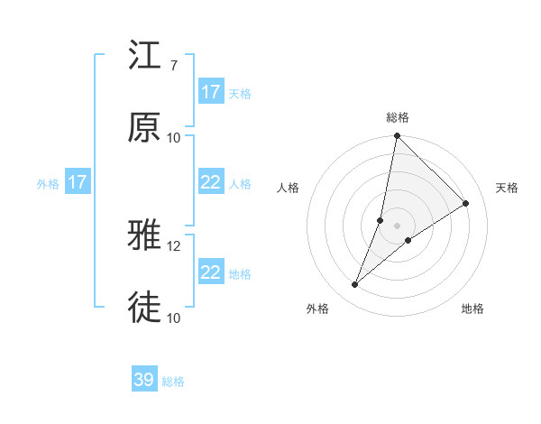 江原 雅徒さんの天格は17画の4点!
