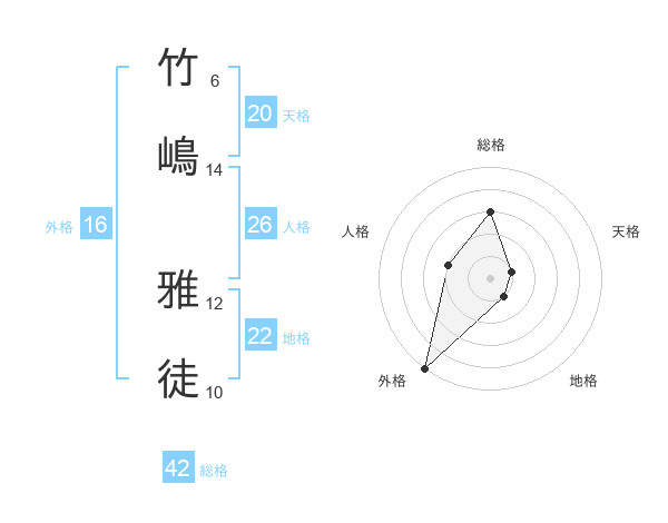 竹嶋 雅徒さんを姓名の画数から五運を鑑定