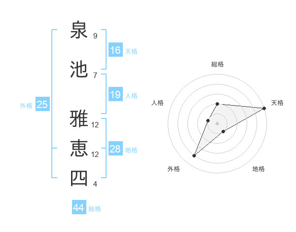 泉池 雅恵四さんの総格は44画の2点!