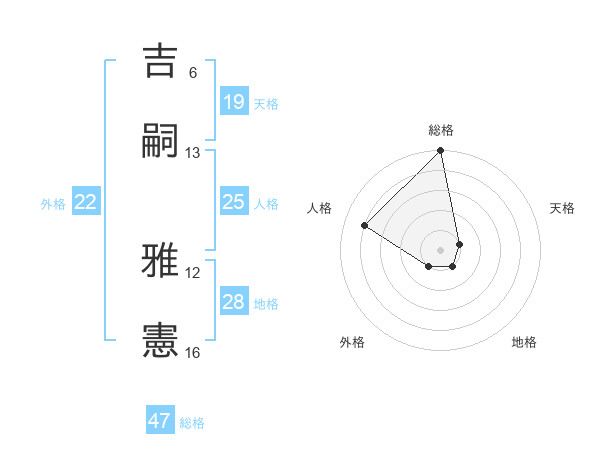 吉嗣 雅憲さんの総格は47画の5点!
