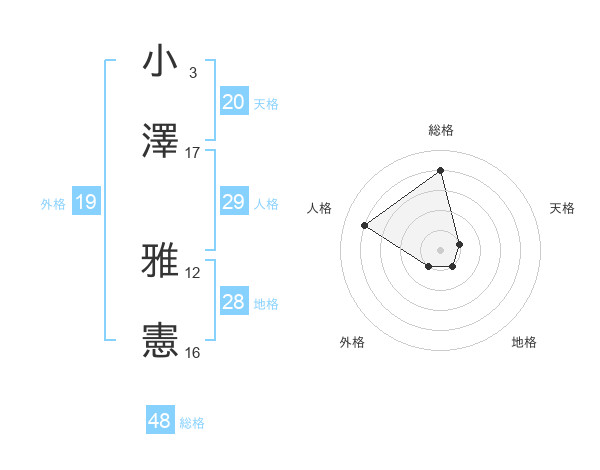 小澤 雅憲さんの天格は20画の1点!