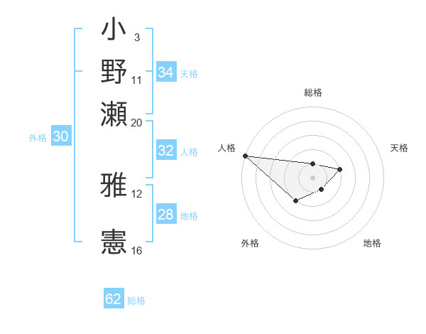 小野瀬 雅憲さんを姓名の画数から五運を鑑定