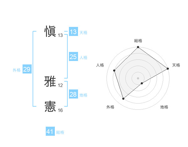 愼 雅憲さんの天格は13画の5点!