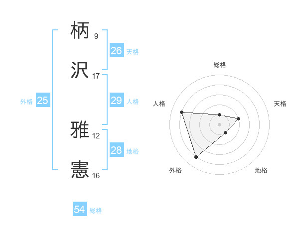 柄沢 雅憲さんを姓名の画数から五運を鑑定