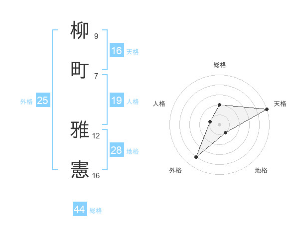 柳町 雅憲さんを姓名の画数から五運を鑑定