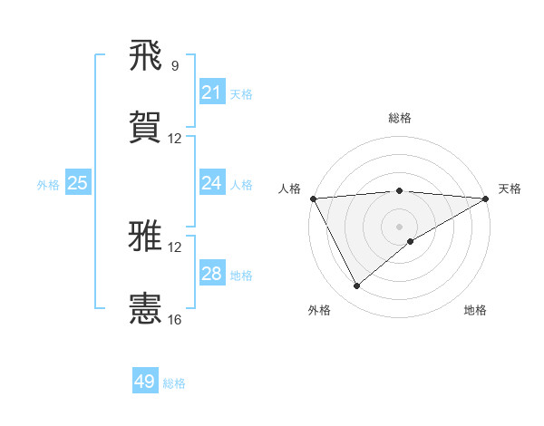飛賀 雅憲さんを姓名の画数から五運を鑑定