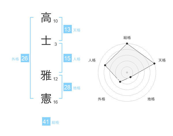 高士 雅憲さんの天格は13画の5点!
