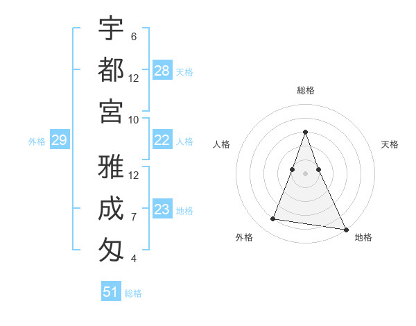 宇都宮 雅成匁さんを姓名の画数から五運を鑑定
