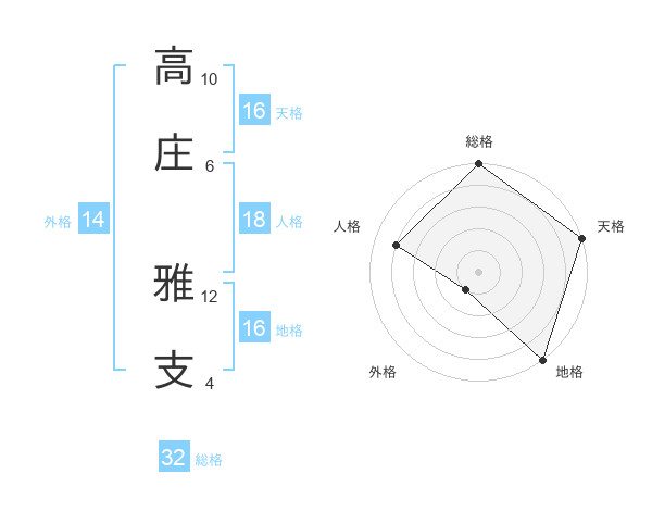 高庄 雅支さんを姓名の画数から五運を鑑定
