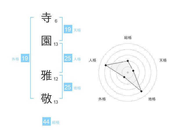 寺園 雅敬さんの地格は25画の4点!