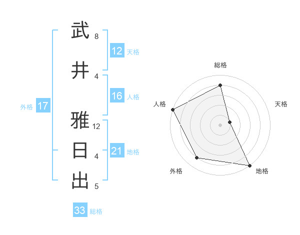 武井 雅日出さんを姓名の画数から五運を鑑定