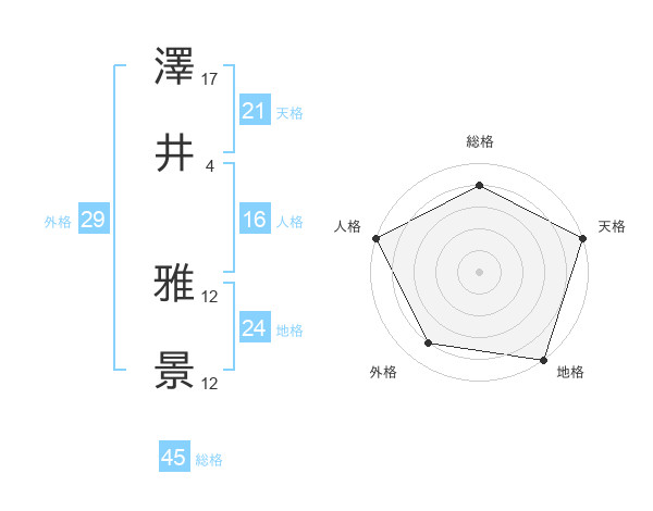 澤井 雅景さんの天格は21画の5点!