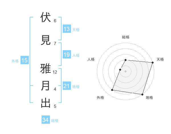 伏見 雅月出さんの天格は13画の5点!