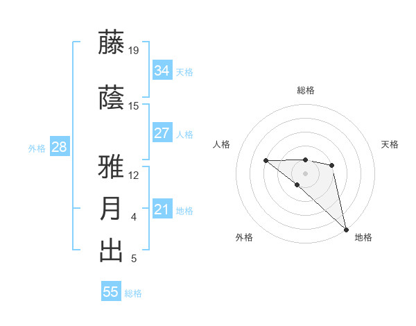 藤蔭 雅月出さんの地格は21画の5点!
