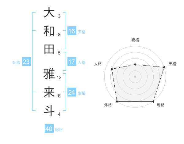 大和田 雅来斗さんを姓名の画数から五運を鑑定