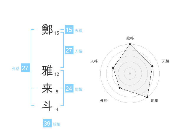 鄭 雅来斗さんを姓名の画数から五運を鑑定