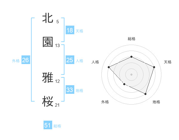 北園 雅桜さんを姓名の画数から五運を鑑定