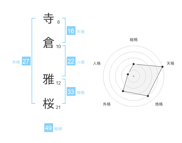 寺倉 雅桜さんの総格は49画の2点!