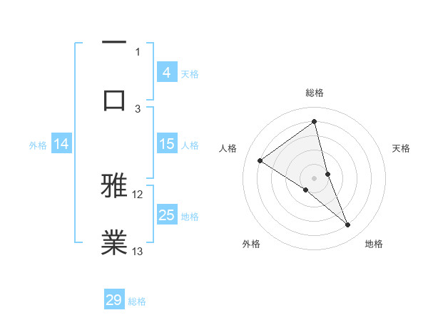 一口 雅業さんの総格は29画の4点!