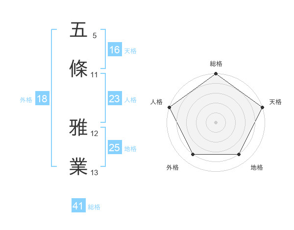 五條 雅業さんの天格は16画の5点!
