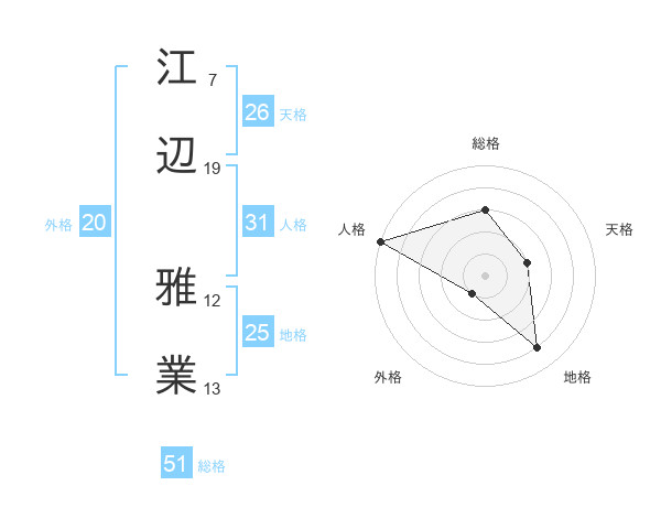江辺 雅業さんの総格は51画の3点!