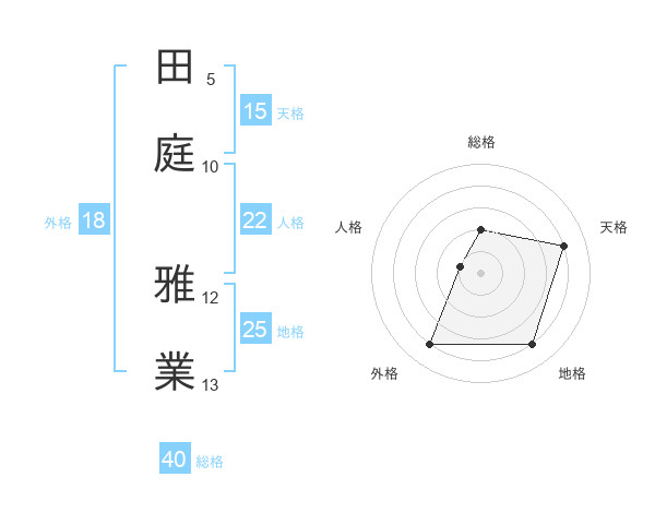田庭 雅業さんの総格は40画の2点!