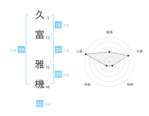 久富 雅機さんの天格は15画の4点!