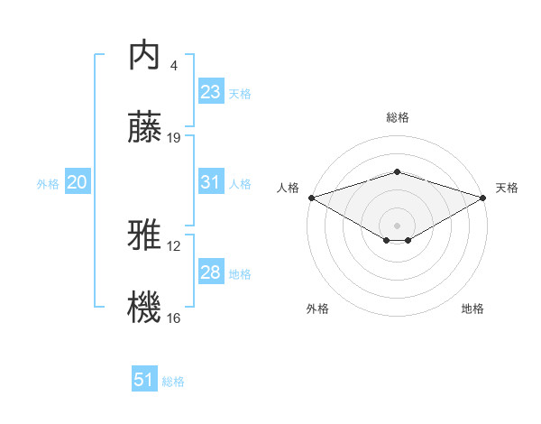 内藤 雅機さんの総格は51画の3点!