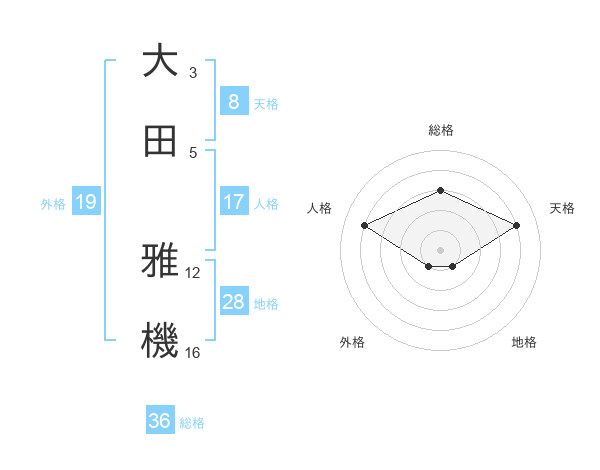 大田 雅機さんを姓名の画数から五運を鑑定