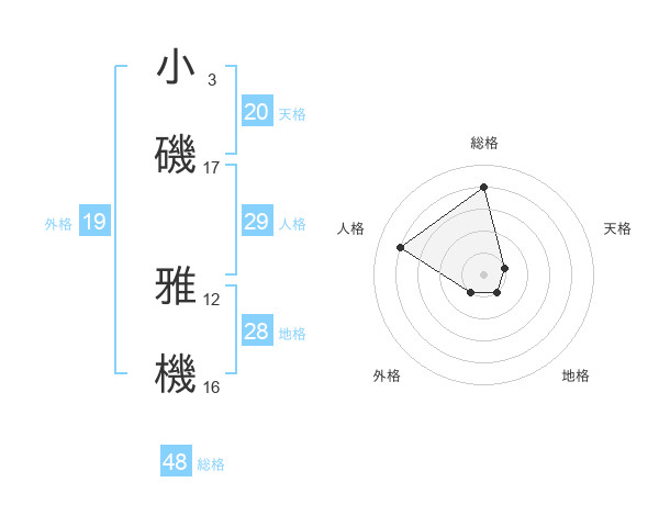 小磯 雅機さんの天格は20画の1点!