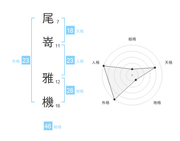 尾嵜 雅機さんを姓名の画数から五運を鑑定