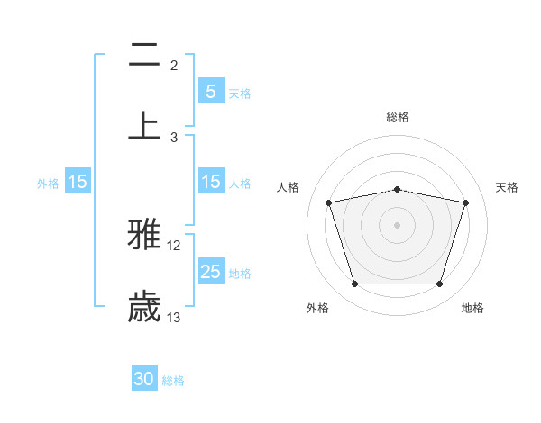 二上 雅歳さんの地格は25画の4点!