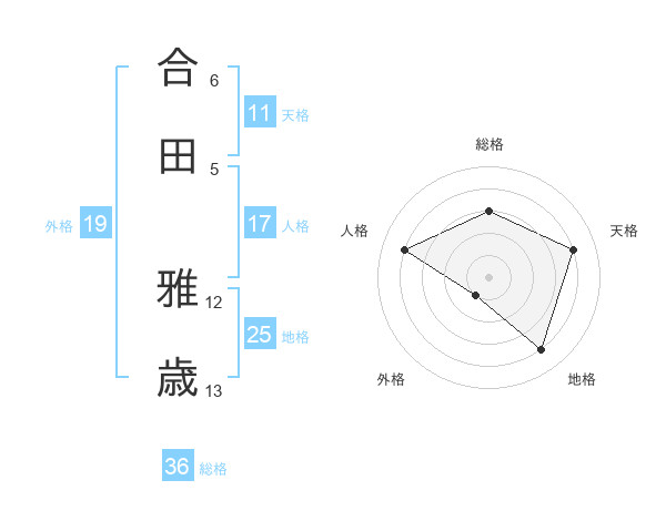 合田 雅歳さんを姓名の画数から五運を鑑定