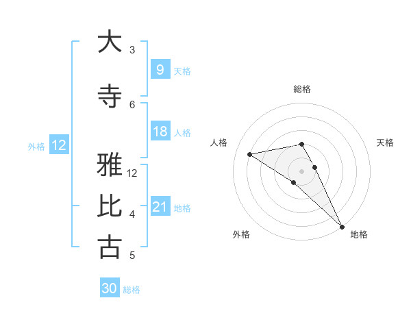 大寺 雅比古さんを姓名の画数から五運を鑑定