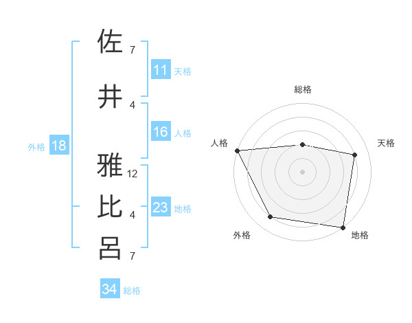 佐井 雅比呂さんの総格は34画の2点!