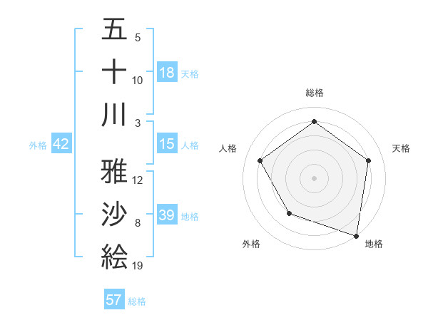 五十川 雅沙絵さんを姓名の画数から五運を鑑定