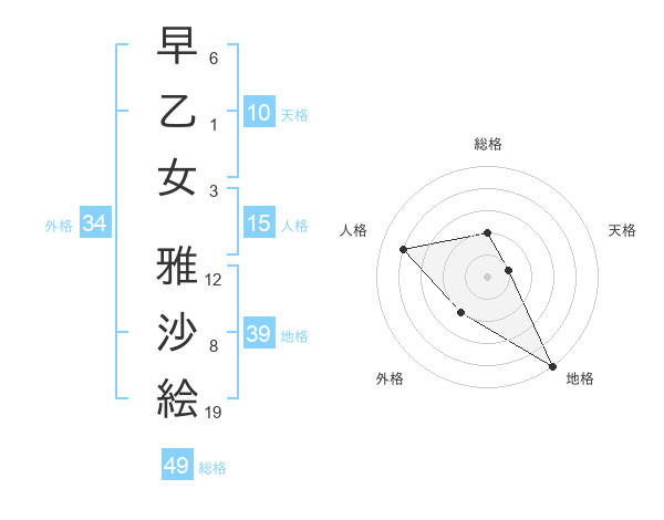 早乙女 雅沙絵さんを姓名の画数から五運を鑑定