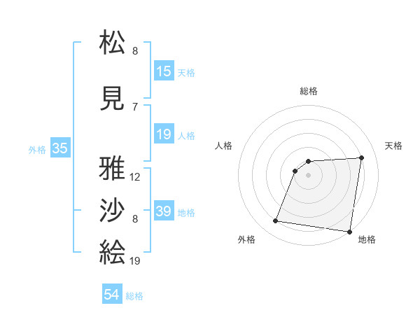 松見 雅沙絵さんを姓名の画数から五運を鑑定