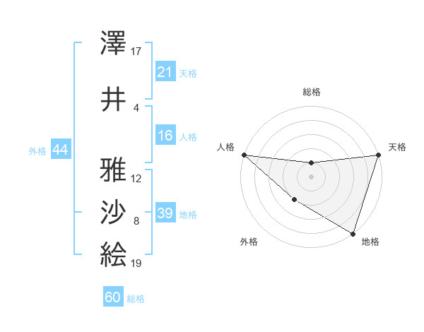澤井 雅沙絵さんを姓名の画数から五運を鑑定