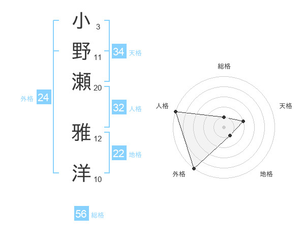 小野瀬 雅洋さんを姓名の画数から五運を鑑定