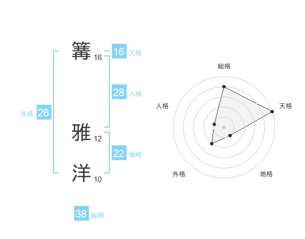 篝 雅洋さんの天格は16画の5点!