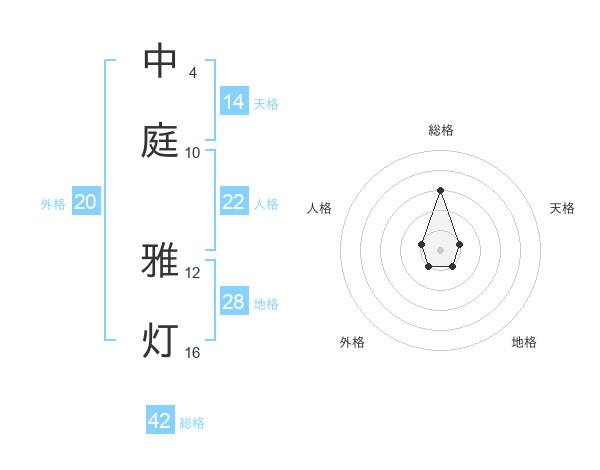 中庭 雅灯さんの総格は42画の3点!