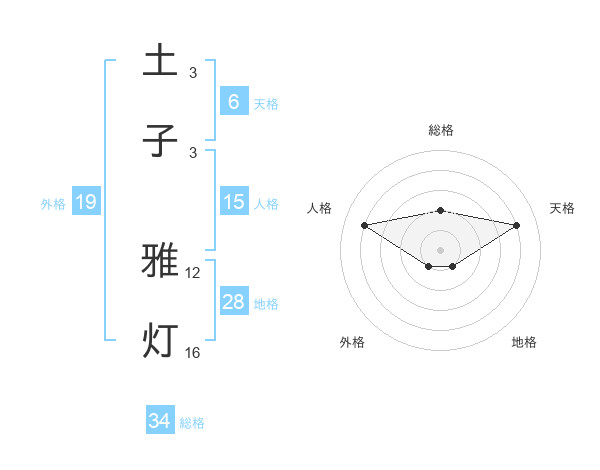 土子 雅灯さんを姓名の画数から五運を鑑定