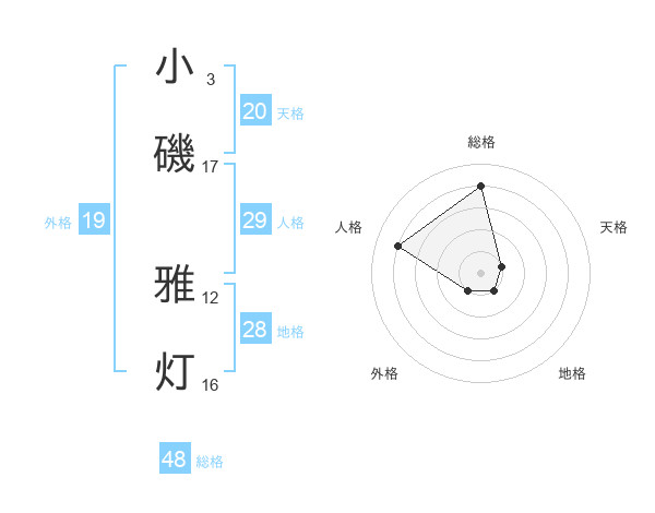 小磯 雅灯さんの総格は48画の4点!