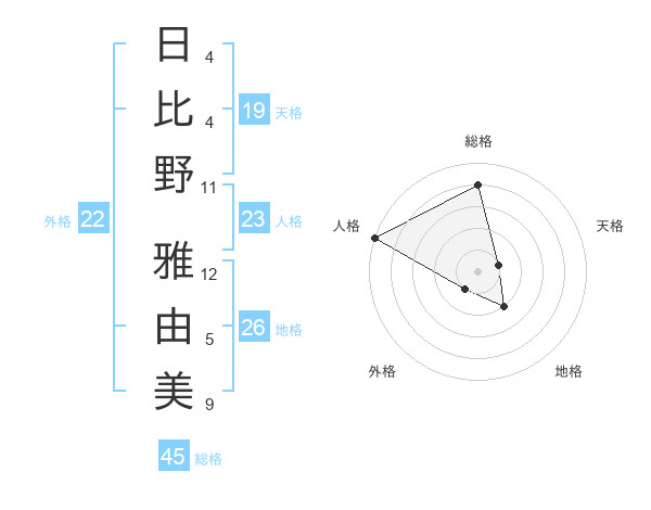 日比野 雅由美さんを姓名の画数から五運を鑑定
